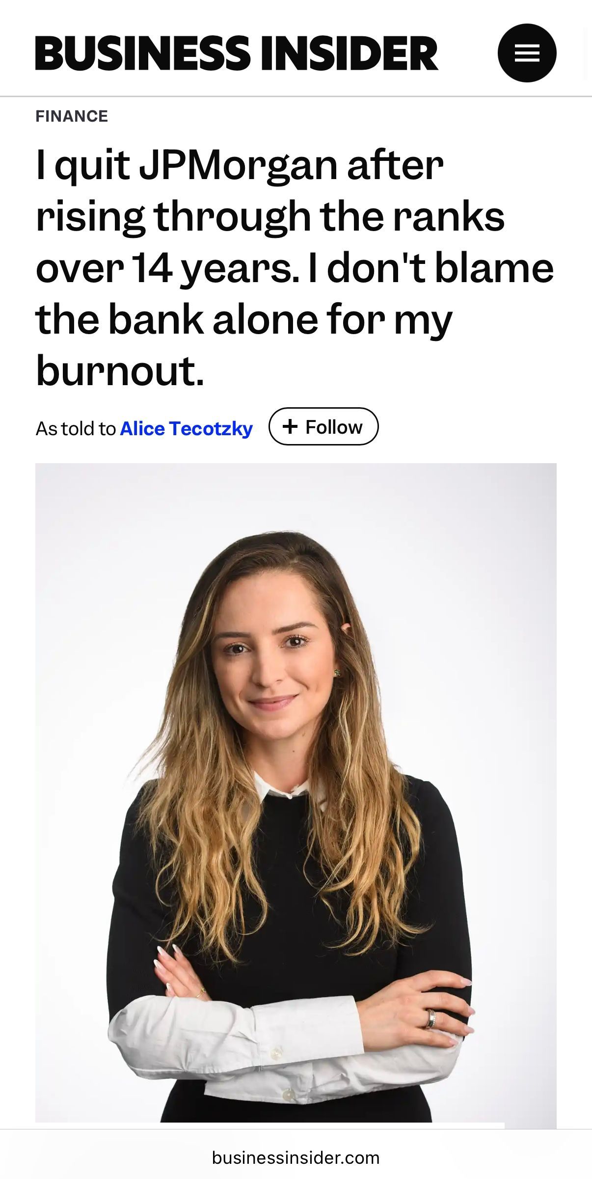 She was an executive director in her 30s and quit due to burnout, but doesn't just blame the bank.